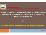 CHARACTERIZATION OF FOREST FIRE EMISSIONS AND THEIR POSSIBLE TOXICOLOGICAL IMPACTS ON HUMAN BY Mr. Josephate Bosire, Joshua Kibet, PhD., and Thomas Kinyanjui, PhD. ANNUAL INTERNATIONAL RESEARCH CONFERENCE CHARACTERIZATION OF FOREST FIRE EMISSIONS AND THEIR POSSIBLE TOXICOLOGICAL IMPACTS ON HUMAN HEALTH