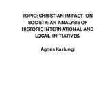CHRISTIAN IMPACT ON SOCIETY: AN ANALYSIS OF HISTORIC INTERNATIONAL AND LOCAL INITIATIVES