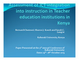 Assesment of ICT intergration into into instruction in Teachers educations institutions in kenya.