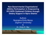 (Kabarak University, 2016)The current thinking on development issues indicates that there is a gender imbalance in access to and control over resources in most African communities (Snyder, 2000) In communities like the Keiyo of Kenya, women were ... -